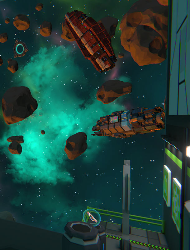 Сражайтесь против друзей в режиме «каждый сам за себя» или «команда на команду». И постарайтесь не вылететь в открытый космос.
