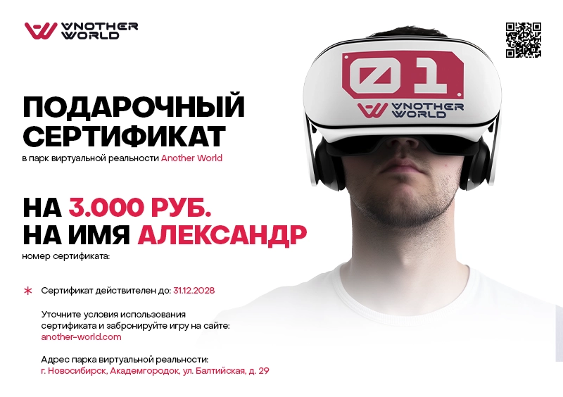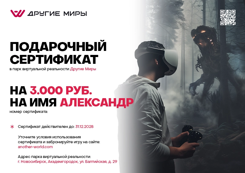Сертификат можно получить самовывозом на нашей VR-арене.