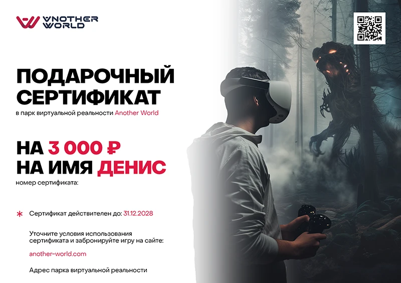 Подарочный сертификат в виртуальную реальность
